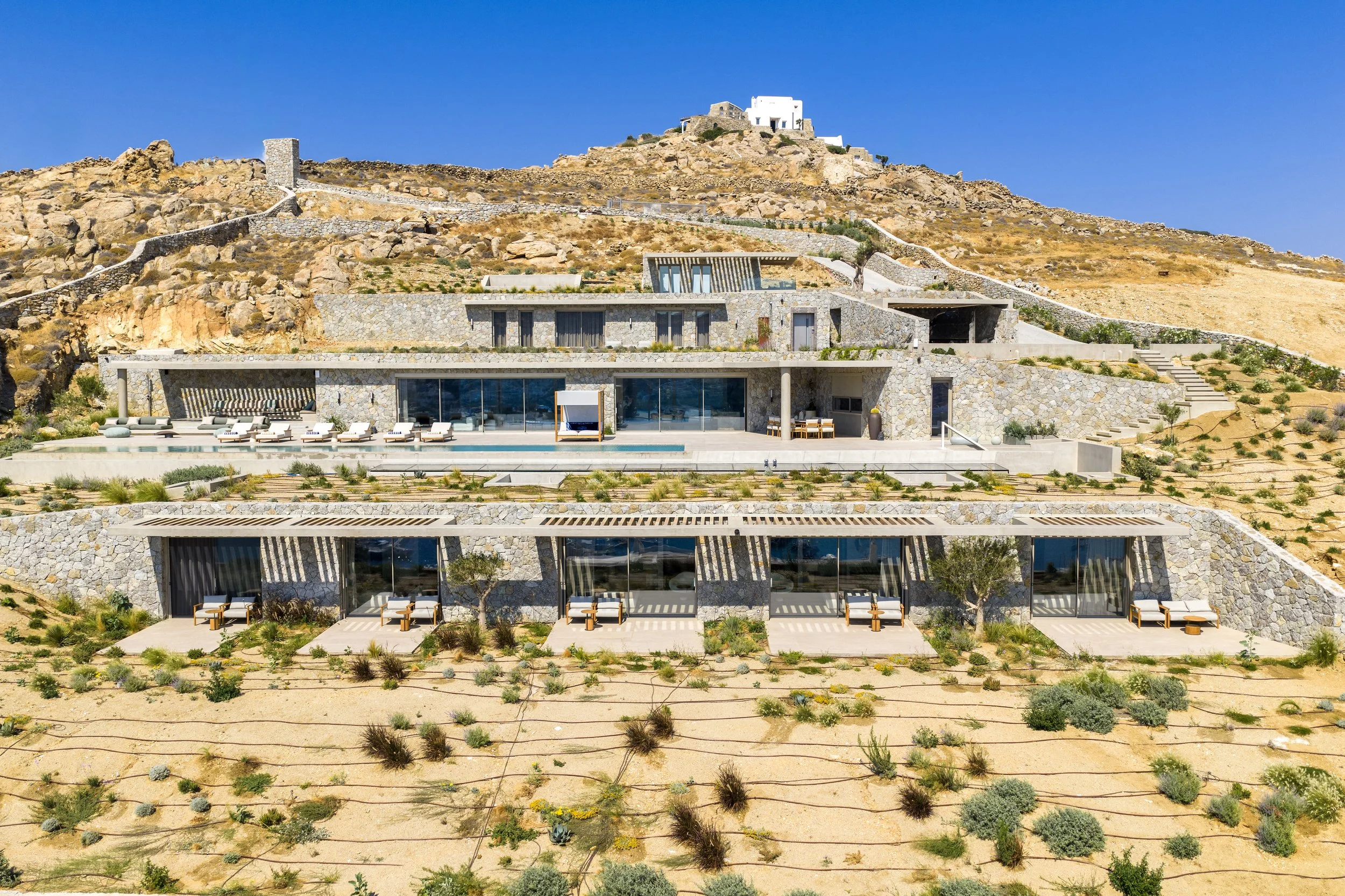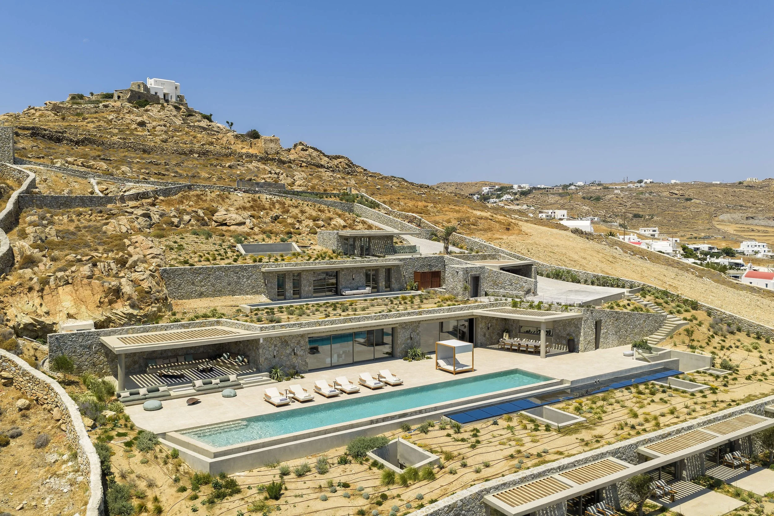 Aerial photography and videography for the villa Oikema located in Mykonos Greece.